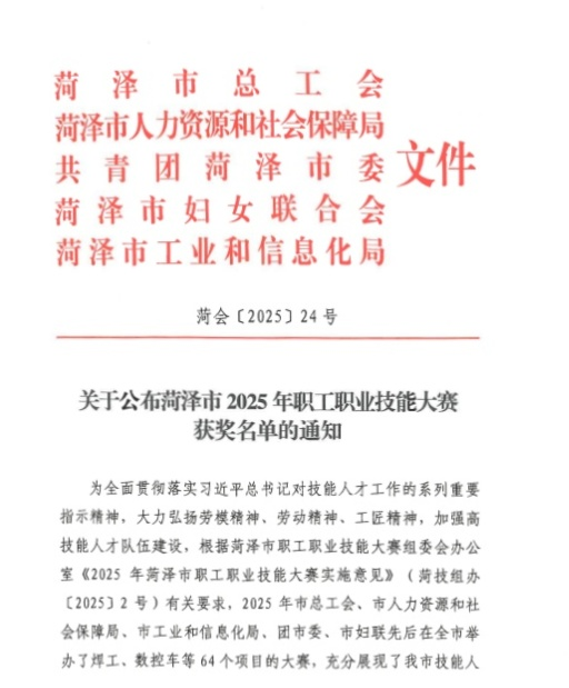 近日,2025年度菏澤市職工職業(yè)技能大賽大賽獲獎(jiǎng)名單正式公布,菏澤投資集團(tuán)多名財(cái)務(wù)員工憑借扎實(shí)的專業(yè)能力斬獲榮譽(yù)。本次大賽共有12 名財(cái)務(wù)人員晉級(jí)決賽,其中楊文芳、王曼、王婕妤三名人員脫穎而出,榮獲大賽三等獎(jiǎng)(位列全市前十名);喬雅倩、張學(xué)環(huán)、段磊、李哲四名同志表現(xiàn)優(yōu)異,斬獲大賽優(yōu)秀獎(jiǎng)。
