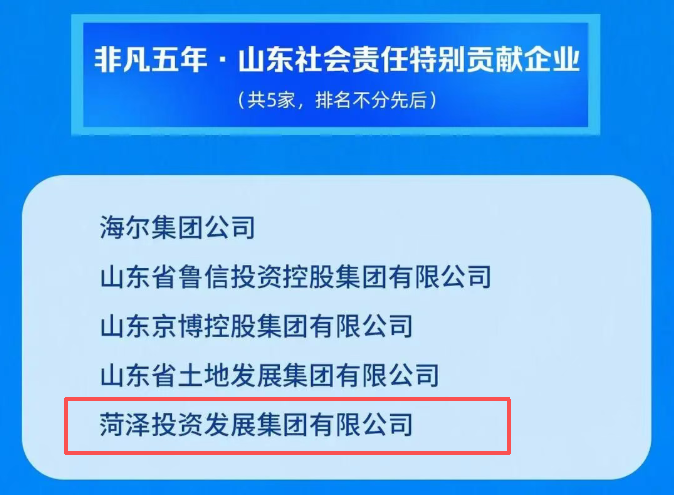 菏澤投資集團(tuán)獲評“非凡五年·山東社會責(zé)任特別貢獻(xiàn)企業(yè)”榮譽(yù)